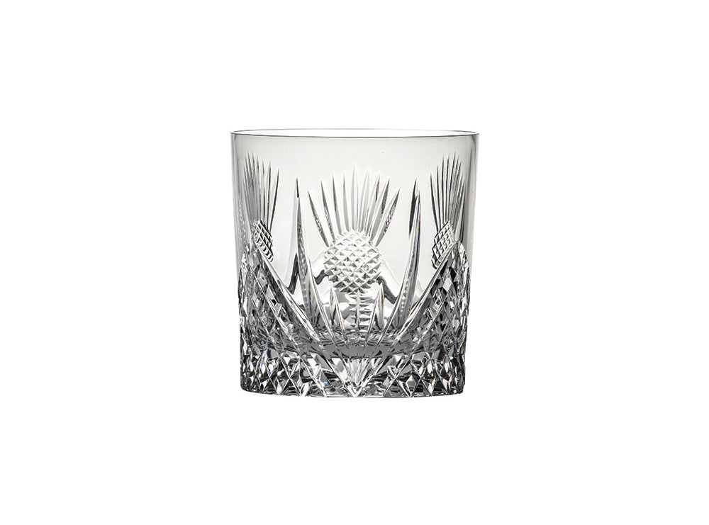Royal Scot Crystal is known for exquisitely hand made and skilfully hand cut crystal and has a reputation for producing the very finest British hand cut crystal tableware and giftware. The Scottish Thistle Whisky tumbler is a classical hand cut glass with a beautiful and distinctive diamonds and Scottish Thistle design.